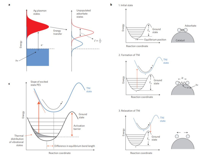 激发态电子可注入反应物的反键轨道削弱化学键,降低反应活化能;同时空穴可抽取吸附物种的电子引发键断裂,这种双向电荷转移机制协同促进反应进行。